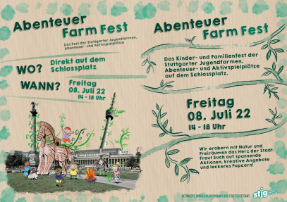Die STjG veranstaltet als Personalträger der Jugendfarmen und Aktivspielplätze am 08.07.22 das „AbenteuerFarmfest“ auf dem Schlossplatz – natürlich sind wir mit dabei und bringen auch unsere mobile Schmiede mit. Schaut gerne einmal vorbei. Natürlich hat die Jugendfarm trotzdem geöffnet und auch der Mittagstisch findet statt. hier noch der offizielle Einladungstext: Willkommen auf dem AbenteuerFarmFest Die Stuttgarter Jugendfarmen und Abenteuer- und…